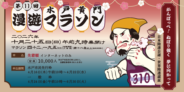 主催:水戸黄門漫遊マラソン実行委員会/茨城陸上競技協会/水戸市陸上競技協会/水戸市/水戸市教育委員会 共催:産経新聞社